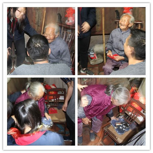 老奶奶一直握著我們的手,含著眼淚說了很多話。此情此景,很多女同事不禁流下了眼淚。臨別時候,老奶奶還為大家送上祝福,祝大家事事順利、財源廣進。