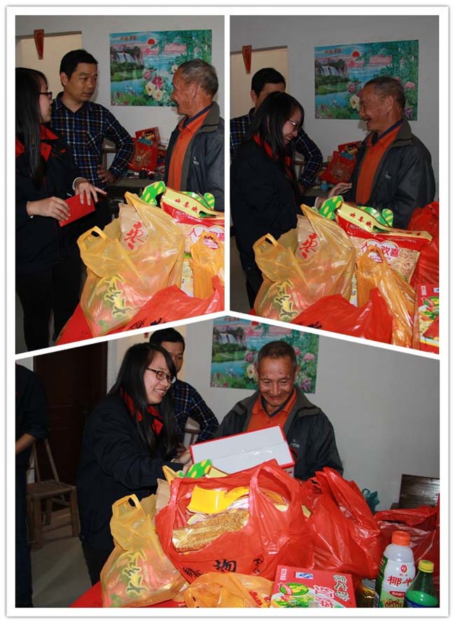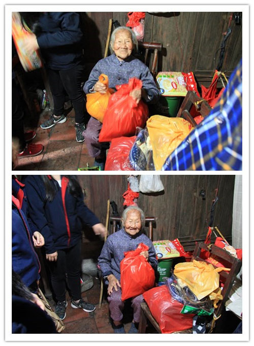 這位老爺爺,一人獨居,沒有兒女贍養(yǎng),70多歲仍外出干活維持生計。往日冷清的家,今天充滿了歡聲笑語,他開心地說笑:“這么多禮品還有過年利是,今天過節(jié)啦!”