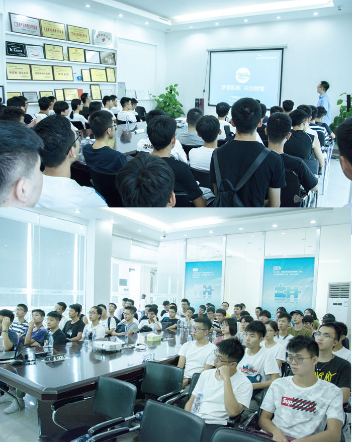 公司對廣工師生的到來表達了誠摯的歡迎,并組織工程師與同學們展開溝通交流,精心安排了技術(shù)講解課程、交流會,參觀展廳和車間生產(chǎn)觀摩等流程。