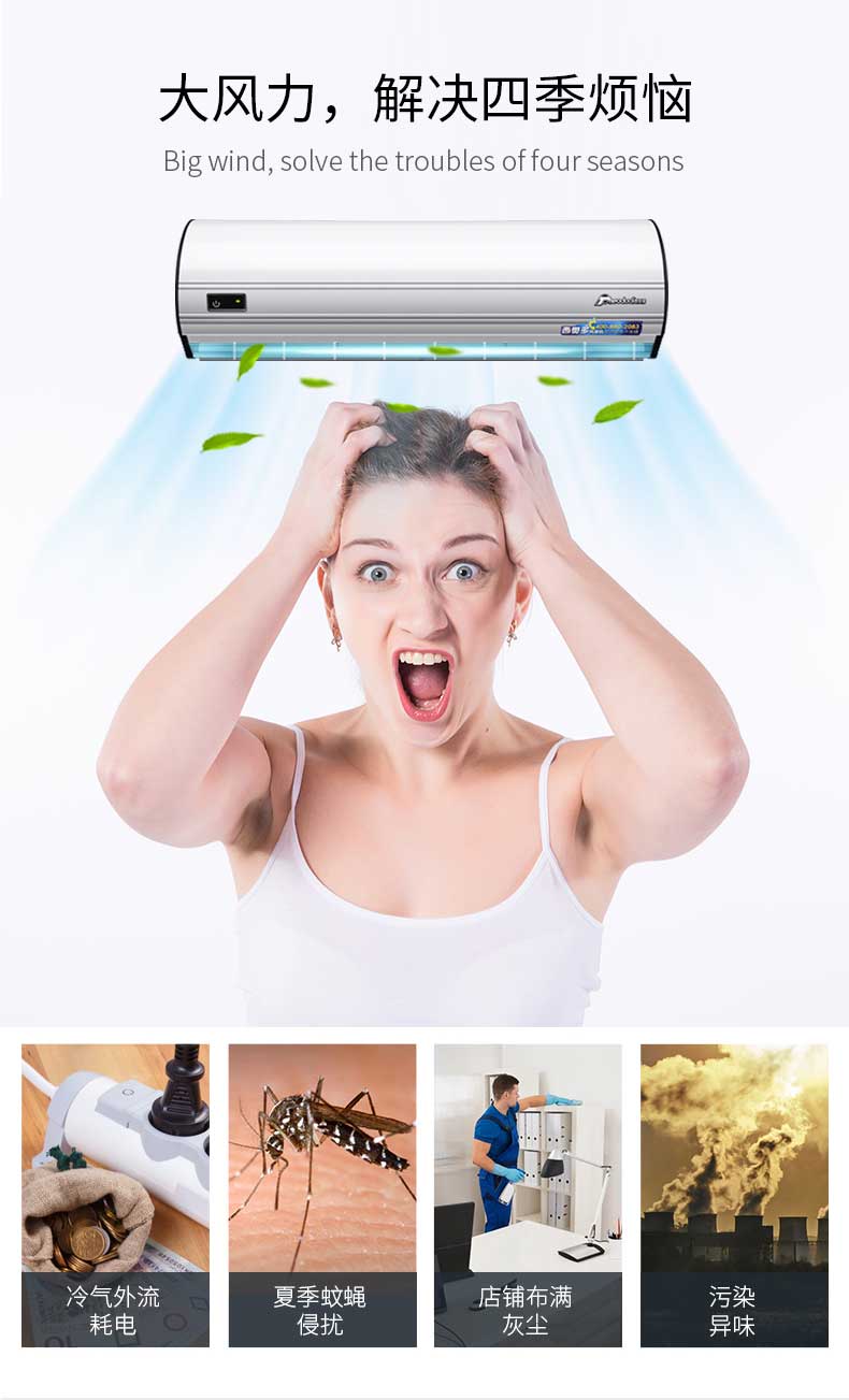減少室內(nèi)冷氣外流,節(jié)省空調(diào)耗電,適用于需不斷開關(guān)門的餐廳、商店等場所。夏天走進(jìn)各種開設(shè)冷氣的場所,入口處清涼的強(qiáng)風(fēng)讓顧客頓感涼爽愉悅。