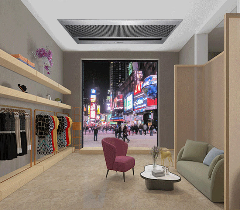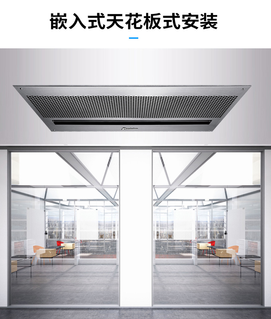 嵌入天花板式或向下吊裝設(shè)計(jì),裝飾美觀,全方位立體送風(fēng);
