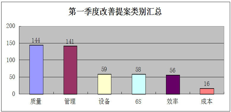 品質(zhì)提升指有關(guān)改進(jìn)公司產(chǎn)品質(zhì)量管理體系方面的辦法;技術(shù)改進(jìn)是對(duì)機(jī)器設(shè)備、工具、工藝技術(shù)等方面的改進(jìn);合理化建議指有關(guān)改進(jìn)生產(chǎn)環(huán)境和運(yùn)營管理的措施,例如降低返工和返修率、生產(chǎn)流程、倉儲(chǔ)物流、降低能耗、顧客反饋等。